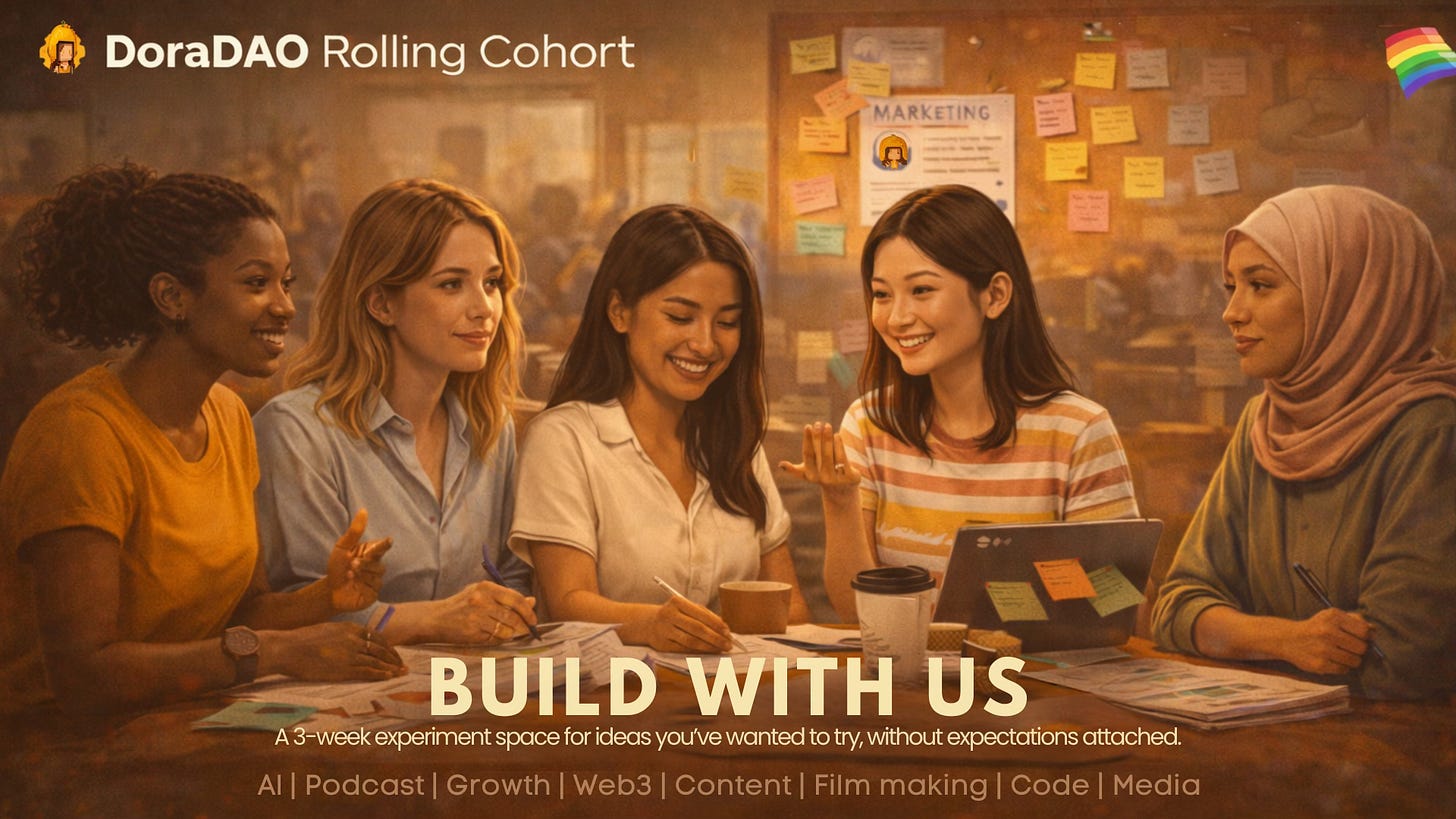 A 3-week rolling cohort for builders, creators, and operators who want to experiment, ship, and scale real ideas, using DoraDAO as the living ecosystem.